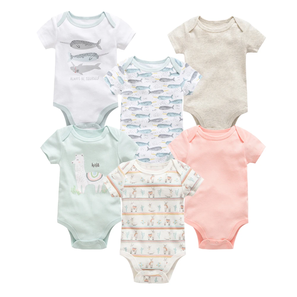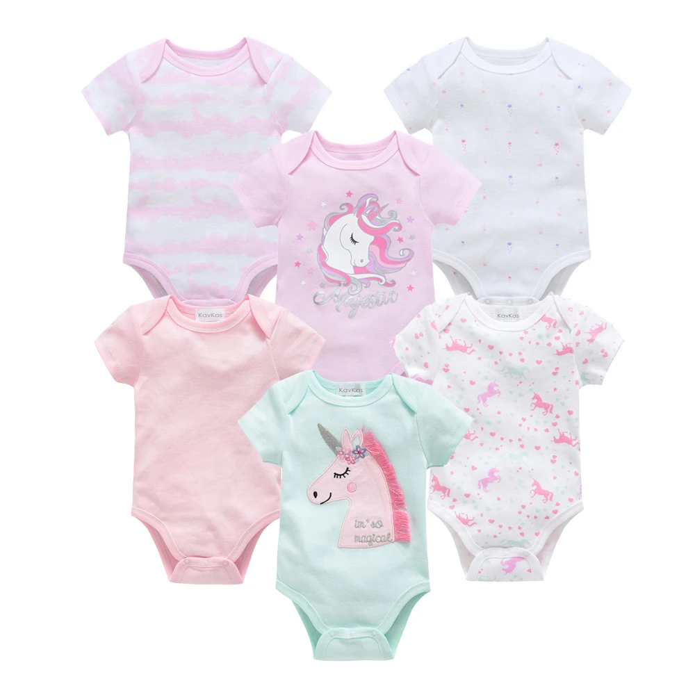 Kavkas 3 6 Pcs/lot Baby Boy Bodysuit Short Sleeve Cotton Newborn Clothes Cartoon Print Summer Toddler Overalls